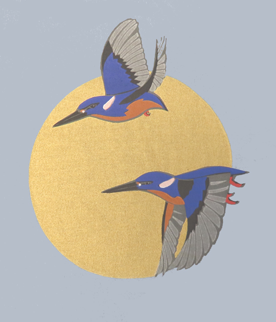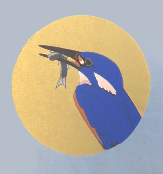 Azure Kingfisher on Silver Grey background. This design also available on Ocean Blue.